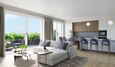 In nuova ed elegante palazzina di dodici famiglie in fase di costruzione ed ubicata in una zona tranquilla e residenziale di Rescalda Il progetto prevede la realizzazione di quattro palazzine con ascensore, due delle quali sono già state completate. L'appartamento offre un'ampia area living, due camere da letto, due bagni e un comodo ripostiglio. Un punto di grande pregio è sicuramente il terrazzo privato, accessibile dalla zona giorno, insieme ai due balconi dalle camere; spazi ideali per socializzare o godere di attimi di relax in totale tranquillità. A completare la proprietà una cantina e un box doppio. L'unità abitativa è personalizzabile e, oltre ad avere un'ampia scelta di capitolato, sarà dotata di: - riscaldamento a pavimento alimentato da pompa di calore autonoma per ogni singola abitazione - aria condizionata - infissi in PVC con vetri antisfondamento basso emissivi e camera gas Argon - avvolgibili motorizzati in alluminio - murature perimetrali ad alto isolamento termico e acustico - impianto fotovoltaico autonomo. La combinazione di materiali di prestigio, gli impianti di ultima generazione e le innovative tecniche costruttive consentiranno il raggiungimento della CLASSE ENERGETICA 'A4'. Consegna prevista: settembre 2026.