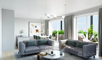 In una nuova ed elegante palazzina di 12 famiglie in costruzione. Il progetto prevede la realizzazione di quattro palazzine, due delle quali sono già state completate. Le unità abitative saranno personalizzabili e offriranno un'ampia selezione di materiali tra cui scegliere. L'appartamento posto al piano terra presenta un'ampia zona giorno, due camere da letto, doppi servizi e un pratico ripostiglio. Un elemento di grande valore è senza dubbio il giardino privato, con un accesso dalla zona giorno e un altro dalla zona notte, offrendo spazi tranquilli perfetti per socializzare o per trascorrere momenti di relax in totale serenità. A completare la proprietà una cantina e un box doppio. L'unità abitativa è personalizzabile e, oltre ad avere un'ampia scelta di capitolato, sarà dotata di: - riscaldamento a pavimento alimentato da pompa di calore autonoma per ogni singola abitazione - aria condizionata - infissi in PVC con vetri antisfondamento basso emissivi e camera gas Argon - avvolgibili motorizzati in alluminio - murature perimetrali ad alto isolamento termico e acustico - impianto fotovoltaico autonomo. La combinazione di materiali di prestigio, gli impianti di ultima generazione e le innovative tecniche costruttive consentiranno il raggiungimento della CLASSE ENERGETICA 'A4'. La consegna è prevista per settembre 2026.