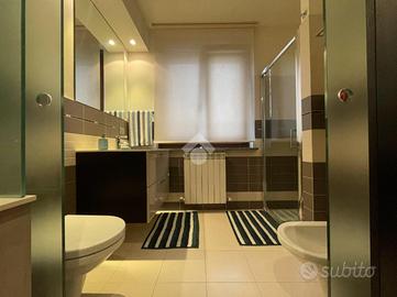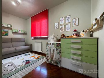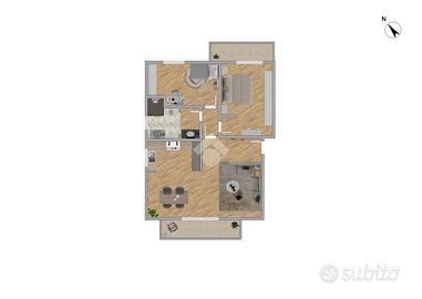 L'elegante appartamento è situato al piano primo di una piccola palazzina di due piani edificata nel 2005. Questo immobile è formato da spazi ben organizzati, che offrono un'atmosfera accogliente e funzionale. La zona giorno è illuminata dalla presenza di una finestra e da un'ampia porta finestra, che conduce al balcone, perfetto per momenti di relax all'aperto. In questo spazio, la cucina si integra in modo armonioso con l'ampio soggiorno, rendendolo ideale per famiglie e cene con amici. Il disimpegno anticipa la zona notte, dove le due camere da letto offrono comfort e privacy; la matrimoniale è dotata di un balcone privato. Il bagno è suddiviso in due aree, separate da una raffinata porta in vetro con ante scorrevoli: una zona per il lavandino e un'altra con i sanitari e doccia, entrambe caratterizzate da finiture moderne. L'appartamento è interamente rifinito in parquet e provvisto di aria condizionata, garantendo un clima gradevole in ogni stagione. Essendo libero su tre lati, oltre a garantire una luminosità ottimale, offre anche un'ottima ventilazione naturale. A completare la proprietà, troviamo un comodo box auto doppio in larghezza e una cantina nel piano interrato, che offrono praticità e sicurezza. La posizione è tranquilla e permette di raggiungere facilmente i principali servizi e collegamenti, rendendo questa soluzione abitativa ideale per chi cerca comodità e qualità.