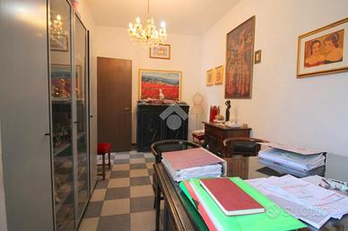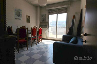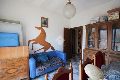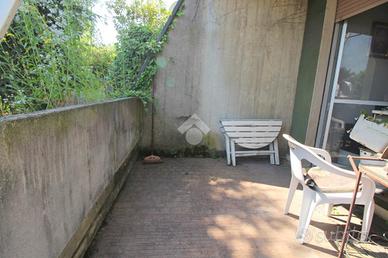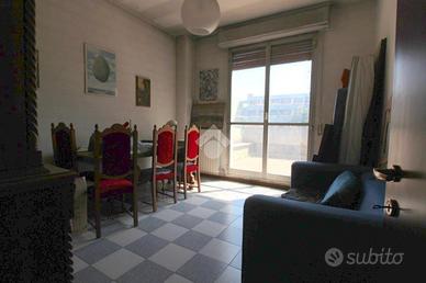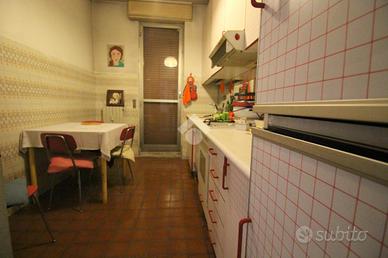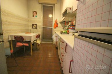L'ingresso è nel soggiorno, dal taglio regolare, reso luminoso dalla presenza di una finestra e di una portafinestra con uscita direttamente sull'ampio terrazzo. La cucina è abitabile e grazie alla sua metratura permette di pranzare comodamente al proprio interno, anch'essa dotata di porta finestra con accesso al terrazzo.