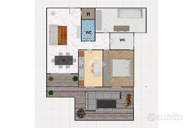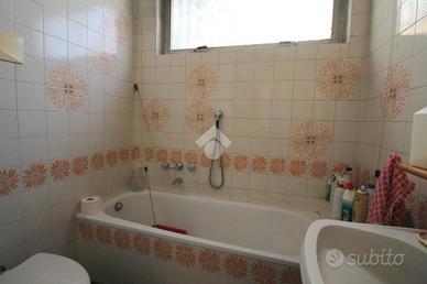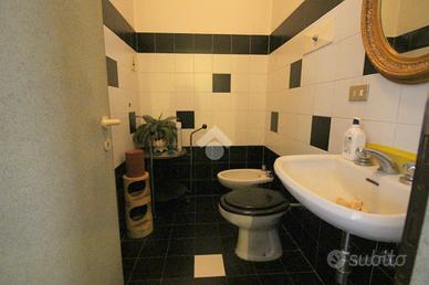Dal disimpegno si accede alla zona notte dov'è presente il bagno di servizio utilizzabile come lavanderia in quanto fornito di attacchi della lavatrice, il bagno padronale finestrato completo di sanitari, vasca, camera singola di ampia metratura dotata di portafinestra con uscita sul balcone e camera matrimoniale che ospita un arredo completo anch'essa con uscita sul terrazzo.