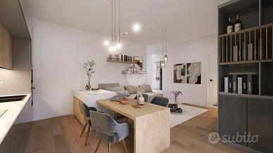 L'APPARTAMENTO E' PREDISPOSTO PER ESSERE TRASFORMATO IN UN QUATTRO LOCALI GRAZIE ALLA SUA AMPIA METRATURA. I RENDER E LA PLANIMETRIA SONO L'ESEMPIO DI COME POTREBBE ESSERE TRASFORMATO L'IMMOBILE.