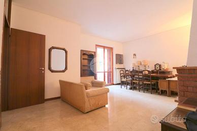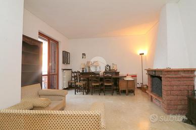 L'ingresso accede all'ampia cucina abitabile e ad un bagno di servizio finestrato con disimpegno. Il salone è caratterizzato da un camino e da un comodo terrazzo sfruttabile nei periodi più miti e caldi della stagione estiva.