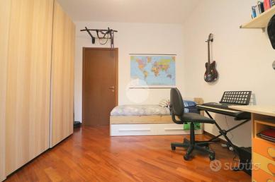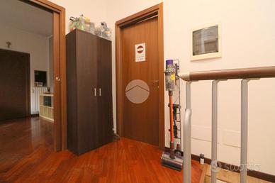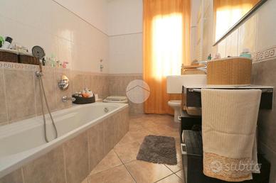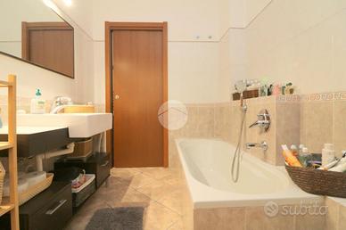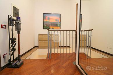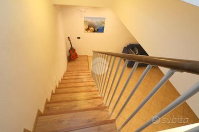 Nel disimpegno un bagno finestrato, dotato di vasca ed un vano scala che porta al piano cantinato con una zona ampia open space rifinita con piastrelle dai colori chiari per rendere l'ambiente piu' luminoso e versatile. Inoltre un bagno con doccia che viene utilizzato come lavanderia. La porta blindata che collega il box al piano cantinato offre un' ulteriore sicurezza e praticità.