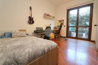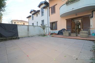 In piccola e recente palazzina del 2004 di 5 famiglie, situata in una zona residenziale di Rho, tranquilla ma ben collegata, questo tre locali al piano terra è perfetto per chi cerca un po' di tranquillità ma non vuole rinunciare ad avere tutto a portata di mano.