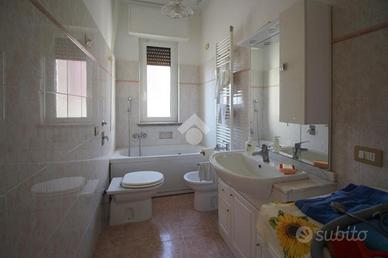 Il bagno finestrato è completo di sanitari, attacchi della lavatrice e vasca.