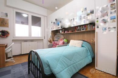 L'appartamento posto al quarto piano con ascensore da accesso all'ingresso che si apre direttamente sulla zona giorno, spaziosa e luminosa, dotata di un balcone che regala una piacevole vista sul verde condominiale e una buona esposizione alla luce naturale.