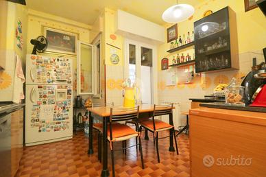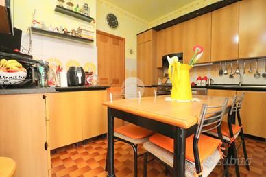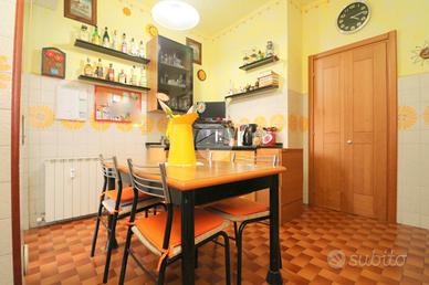 La cucina abitabile separata dalla zona giorno è ampia e funzionale, perfetta per i momenti conviviali, e dispone di un comodo balconcino.