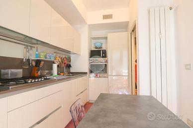 L'ingresso conduce direttamente alla zona giorno, dove un ampio terrazzino offre lo spazio ideale per rilassarsi e intrattenere amici e familiari durante la bella stagione. La cucina abitabile, separata dalla zona living, dispone di un comodo balconcino.