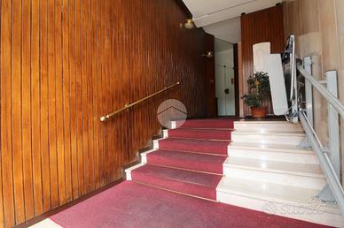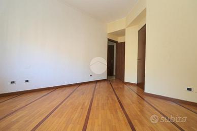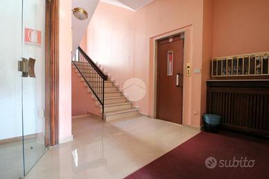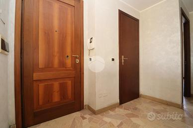 Dal disimpegno si accede a un comodo ripostiglio e a un bagno/lavanderia. La zona notte comprende due camere matrimoniali: una con cabina armadio e l'altra con un balcone che affaccia sull'interno del condominio. Il secondo bagno, ampio e dotato di vasca da bagno, completa la zona notte.