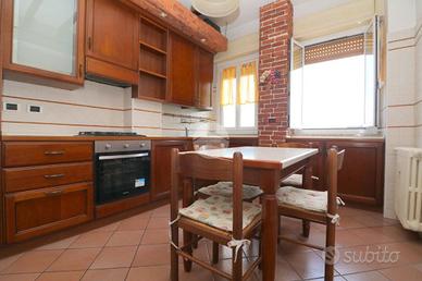 L'ingresso, dotato di porta blindata, si apre su un ampio soggiorno doppio di circa 30 mq, illuminato da una finestra e da una porta finestra che dà accesso a un balcone con vista sul Santuario. La cucina, abitabile e molto luminosa, è dotata di due finestre rivolte a est, garantendo un'ottima luminosità durante tutto il giorno.
