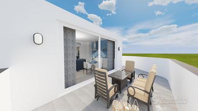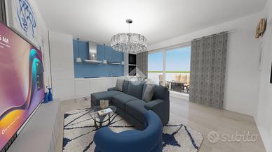 l'ingresso si apre direttamente sull'ampio soggiorno: moderno open space con cucina a vista ulteriormente valorizzato dall'ampia porta finestra scorrevole lunga 4m che porta al terrazzo di oltre 20mq.