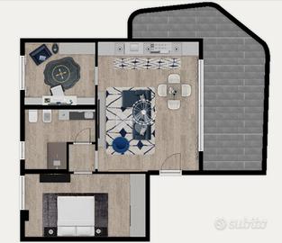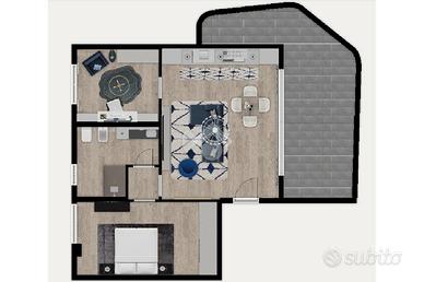 Adiacente al soggiorno troviamo un locale jolly che offre la possibilità di gestire al meglio la vivibilità dell'appartamento; infatti potrebbe essere sfruttato come ampia cucina abitabile - studio/smart working - cameretta, oppure ancora diventare parte del soggiorno generando così un grande ambiente leaving di quasi 35mq.