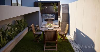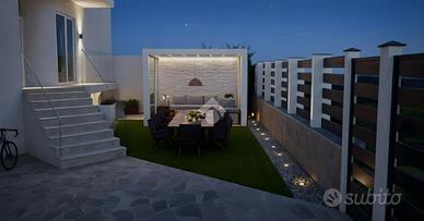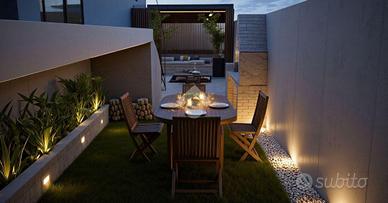 Situato al piano terra, l'immobile è composto da tre locali con cucina abitabile, doppi servizi e giardino privato.