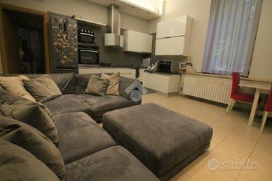 L'ingresso è direttamente nel soggiorno, dal taglio regolare che ospita un arredo completo. Tramite scala interna si raggiunge l'ampia cantina, utilizzabile come locale hobby o sfruttabile per momenti di convivialità. La cucina forma un unico ambiente col soggiorno, adibita su parete lineare attrezzata.