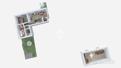 Dal disimpegno si accede alla zona notte formata dalla camera matrimoniale facilmente arredabile, dal bagno finestrato dotato di sanitari e doccia, utilizzabile come lavanderia in quanto dotato di attacchi della lavatrice, completa la zona notte la camera singola, con porta finestra e uscita sul giardino che permette di vivere momenti di relax.