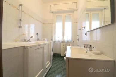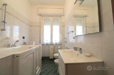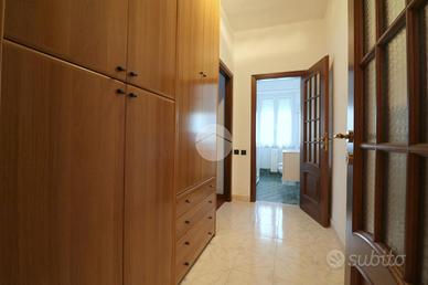 Un disimpegno ampio e capiente, non a caso arredato con un mobile guardaroba, conduce poi alla zona notte, composta da un bagno finestrato con vasca/doccia e da due spaziose camere matrimoniali, accoglienti e ben organizzate.