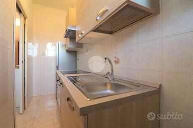 Entrando troviamo un ingresso con porta blindata che si apre direttamente su un luminoso soggiorno con cucina separata e accesso al balcone.