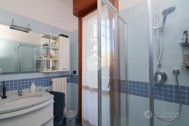 Dal disimpegno si accede alle due camere da letto e ai due bagni finestrati di cui uno con doccia e balcone ed uno con vasca da bagno e zona lavanderia.