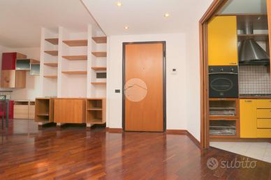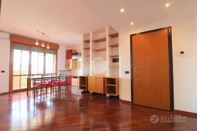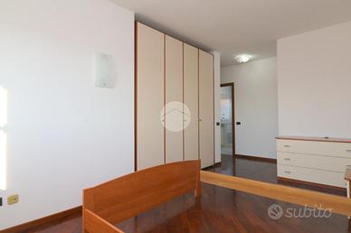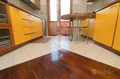 Il parquet, presente in tutta la casa e anche in parte della cucina abitabile, dona continuità e pregio agli ambienti. La cucina, ampia e ben organizzata, è separata dalla zona living tramite una porta scorrevole in legno, soluzione elegante e pratica che consente di modulare gli spazi in base alle esigenze.