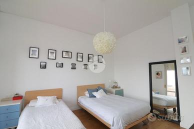 Il bagno è finestrato e completo di doccia. La seconda camera, oggi utilizzata come matrimoniale, offre spazi ben distribuiti. Nel disimpegno è stata inoltre realizzata una comoda cabina armadio, funzionale e ben organizzata.