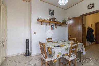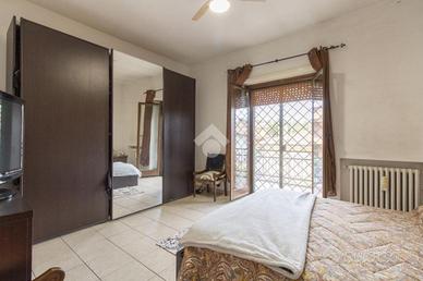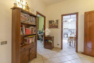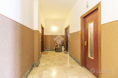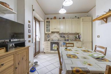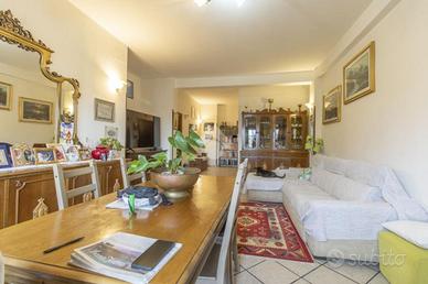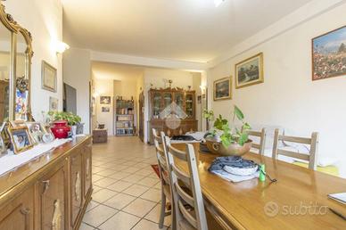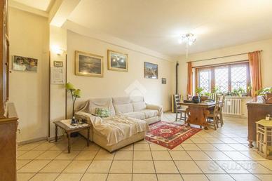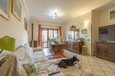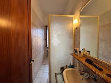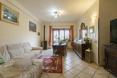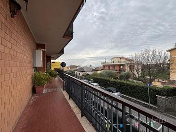 A Riano(RM), in località La Rosta, e più precisamente in Via Trieste, in zona centralissima e nelle immediate vicinanze di tutte le attività commerciali, proponiamo la vendita di un appartamento con ampio terrazzo e doppio posto auto. L'immobile, ristrutturato nel 2001, è ubicato al secondo piano di una palazzina in cortina di 12 unità abitative, dotata di ascensore, in buono stato manutentivo. Internamente è così suddiviso: ampio salone, cucina abitabile, disimpegno, due camere matrimoniali e due bagni, entrambi finestrati, di cui uno con doccia e l'altro con vasca. Tutte le stanze hanno accesso al terrazzo che lo circonda per tutto il perimetro e dal quale si può godere di una buona vista panoramica sulla Capitale. Completano la proprietà due posti auto interni, di cui uno coperto, e una cantina di circa 6 mq. MATERIALI UTILIZZATI E DATI TECNICI: Costruzione del 1974, con infissi in legno con vetro singolo nel salone e nei due bagni mentre nella cucina e nelle camere sono in pvc con doppio vetro( sostituiti nel 2012), tapparelle e grate in ferro apribili, porte interne in legno e portone d'accesso blindato. Pavimenti in gres porcellanato, allaccio in fognatura comunale e per il riscaldamento è autonomo con gas metano. Contributo di 136 trimestrali per spese condominiali. L'immobile dista poche centinaia di metri dalla stazione ferroviaria Roma Nord( Piazzale Flaminio, Civita Castellana, Viterbo) e dalla Via Flaminia ma si trova in un contesto molto tranquillo e riservato. Dista inoltre circa 7 km dal casello autostradale di Castelnuovo di Porto.