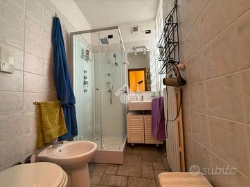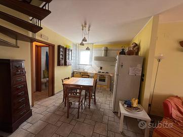 Al piano principale, troviamo un soggiorno con angolo cottura riservato con impianto lavatrice e bagno con box doccia.