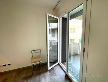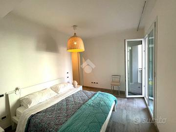 L'appartamento è composto da un soggiorno con cucina a vista e affaccio diretto su un terrazzo vivibile, un corridoio che conduce alla camera matrimoniale con accesso diretto al balcone, alla camera doppia e ad un bagno dotato di box doccia .