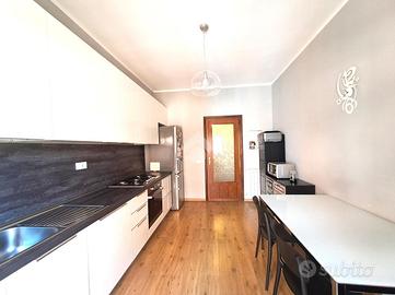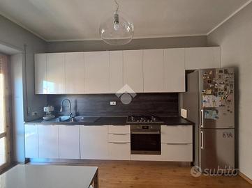 Un'intelligente e funzionale divisione rendono l'appartamento estremamente comodo: entrando troviamo uno spazioso corridoio dal quale si accede a tutti gli ambienti della casa, ossia la zona giorno composta da ampio salone, e cucina abitabile, entrambi con uscita sul balcone; e la zona notte dove troviamo la camera da letto matrimoniale, l'ampia camera da letto singola, il bagno principale, un ulteriore servizio e uno spazioso ripostiglio.