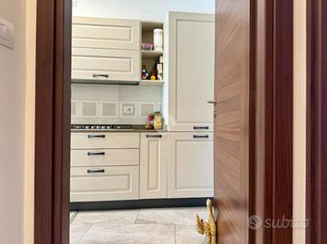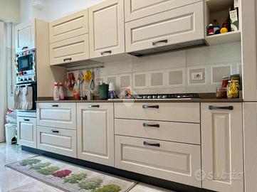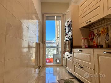 La cucina, ariosa e funzionale, dispone anch'essa di un secondo balcone perfetto per un angolo lavanderia privato.