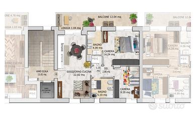 La zona notte è composta da due camere da letto, entrambe ben illuminate e una delle quali con accesso diretto al secondo balcone, garantendo privacy e comfort anche negli spazi esterni. A completare la proprietà, due bagni entrambi finestrati, rifiniti con materiali di qualità e dotati di ogni comfort.