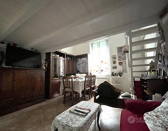 L'ingresso si apre su un corridoio centrale che conduce ai diversi ambienti della casa. Il soggiorno è accogliente e ben illuminato, perfetto per momenti di relax o per ospitare amici e familiari. Adiacente si trova una cameretta con soppalco, una soluzione pratica e originale che può essere utilizzata come zona notte aggiuntiva, studio o spazio giochi.