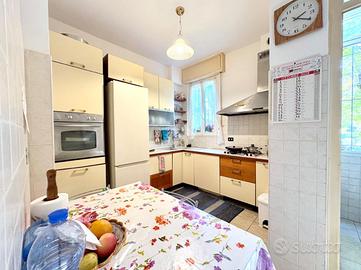 Gli spazi sono ampi e ben distribuiti: una cucina abitabile dove poter ancora sentire il profumo dei pranzi in famiglia, due camere accoglienti, luminose, silenziose, un soggiorno che respira tranquillità. Il bagno ristrutturato, offre una vasca per rilassarsi e un box doccia per la praticità quotidiana. Due balconi ti connettono con l'esterno, regalando luce e aria alle stanze.