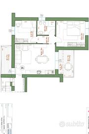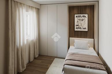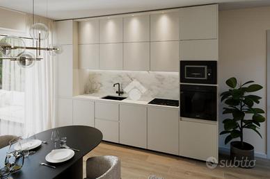 Trilo di nuova costruzione in classe energetica A4 di 79 mq commerciali situato al piano uno con ampio balcone abitabile. Si accede all'appartamento nella zona soggiorno/open space con cucina. Un'ampia porta finestra permette di accedere al meraviglioso balcone.