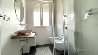 RIMINI: Villaggio azzurro In Esclusiva, appartamento completamente ristrutturato , sia internamente che esternamente dalle ampie metrature situato in zona strategica, vicino al parco 25 Aprile. L'appartamento si trova al primo piano in un piccolo contesto condominiale. Entrando ci troviamo all'interno di un ingresso che si affaccia sulla zona giorno di 60 mq luminosa grazie alla presenza di due balconi. La cucina rimane spaziosa strutturata con isola centrale. Il soggiorno presenta un ampio spazio divano e tv. All'ingresso si può trovare un piccolo ripostiglio con lavatrice e aciugatrice. Un corridoio ci condue alla zona notte dove troviamo due comode camere da letto matrimoniali e due bagni, entrambi finestrati e con box doccia. Una delle camere è servita da balcone. Possibilità di creare anche la terza camera. L'appartamento è stato completamente ristrutturato finemente e l'esposizione è ottimale in quanto la casa si affaccia su tre lati. Esternamente è stato rifatto il tetto, termocappotto, balconi e cancelli automatici con sistemata di video citofono. Internamente la caldaia è a condensazione ed è presente aria condizionata, infissi con vetrocamera, tapparelle motorizzate, impianto antifurto, riscaldamento a pavimento e termostato in ogni ambiente. A completare la soluzione un ampio garage con serranda elettrica e cancello automatico. Ideale per chi cerca soluzioni abitative pronte all'uso senza privarsi delle ampie metrature. Per ulteriori informazioni potete contattarci al nostro numero d'ufficio : (Anche su WhatsApp)