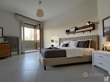 La zona notte è separata rispetto agli ambienti principali e offre spazi comodi e ben organizzati. La camera matrimoniale, è molto ampia e gode dell'accesso diretto al bagbo con finestra e box doccia. La seconda camera, è anch'essa spaziosa e adatta sia come stanza per ragazzi sia come studio con affaccio diretto sul secondo balcone dell'abitazione, di 13,98 mq, che si estende lungo la facciata sud, offrendo una piacevole luminosità.