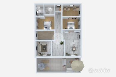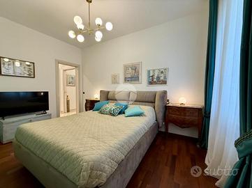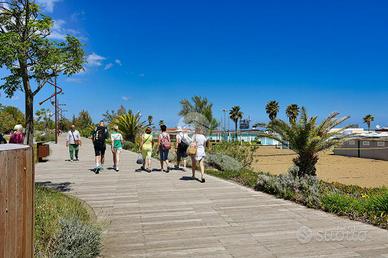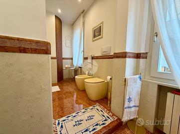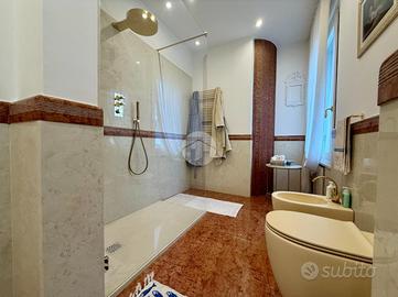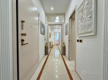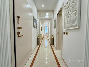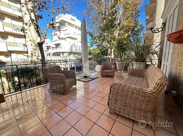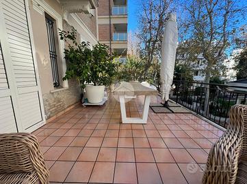 TRIPOLI MARE - APPARTAMENTO DI PRESTIGIO CON TERRAZZO E GARAGE A due passi da Piazzale Kennedy, in una palazzina d'epoca finemente recuperata e composta da sole tre unità, proponiamo un appartamento che combina il fascino storico dell'edificio con un restyling moderno e ricercato. Situato al primo piano e sviluppato sull'intero livello, offre un senso di esclusività raro da trovare in zona. Varcando l'ingresso si è accolti da un piacevole salottino che introduce alla zona giorno, un ambiente luminoso e armonioso dove soggiorno e cucina/pranzo dialogano con naturalezza. Da qui si accede al grande terrazzo, un vero prolungamento della casa: uno spazio riservato e silenzioso, ideale per vivere all'aperto in ogni stagione. La zona notte è composta da due camere matrimoniali, entrambe caratterizzate da superfici generose e comfort elevato; una delle due, grazie all'ampiezza degli spazi, si presta alla creazione di un terzo ambiente in modo semplice e funzionale. I due bagni, entrambi finestrati, presentano materiali e dettagli che riflettono la cura dedicata alla ristrutturazione. Completano la proprietà una cantina finestrata con bagno/lavanderia al piano interrato e un garage doppio nelle immediate vicinanze. L'immobile è inoltre dotato di aria condizionata e impianto fotovoltaico, per unire estetica e comfort contemporaneo. Le spese condominiali sono minime. Una soluzione elegante, riservata e pronta da vivere, perfetta per chi desidera una casa di carattere nel cuore di una delle zone più apprezzate di Rimini.