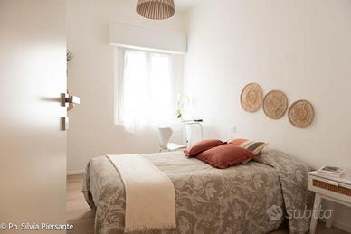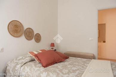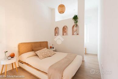 Infine, la camera matrimoniale padronale: ampia, elegante, con una cabina armadio dedicata e un delizioso affaccio su una piccola corte privata, ideale per momenti di calma, letture lente o colazioni riservate.