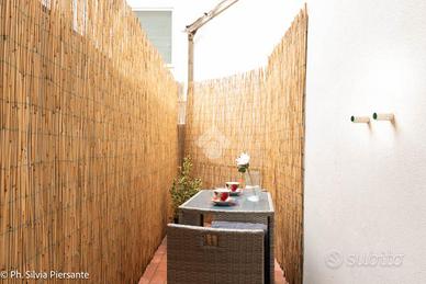 Appena varcato l'ingresso indipendente, ci si ritrova in una corte-giardino privata, un piccolo angolo verde da vivere in ogni stagione, perfetto per chi desidera intimità e tranquillità pur restando nel cuore di Rimini, in una elegante trifamiliare.