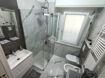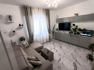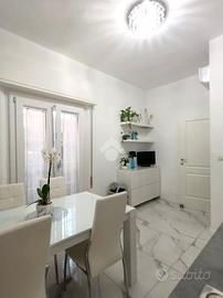 A Miramare, a pochi passi dal mare, proponiamo in vendita un appartamento trilocale in casa bifamiliare con 2 bagni, cucina abitabile, corte priva e posto auto. L'appartamento è stato completamente ristrutturato sia esternamente che internamente. Si accede all'appartamento da un portone blindato direttamente nell'ingresso su corridoio che divide la zona giorno dalla zona notte, con sala e cucina abitabile e 2 camere da letto con 2 bagni entrambi con box doccia. La corte privata a forma di L dà la possibilità di essere utilizzata per pranzi o cene conviviali e zona relax. Possibilità di parcheggio riservato per un auto davanti la propria abitazione. Impianti a norma, infissi in pvc, pompe di calore, zanzariere, inferriate, portone blindato, predisposizione impianti idraulici in caso di suddivisione in due bilocali. Fissa un appuntamento per questo immobile telefonando allo oppure inviaci un'email