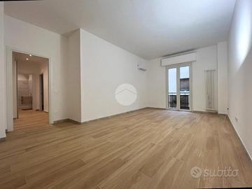 CENTRO STORICO: situato nel cuore del centro storico di Rimini, questo elegante appartamento si trova al secondo piano di un edificio con altezza interna di 3 metri. L'immobile è stato completamente ristrutturato nel 2025, sia nelle rifiniture sia in tutta la parte impiantistica, offrendo comfort moderni e materiali di alta qualità mantenendo il fascino del contesto storico. L'ingresso si apre su una zona giorno luminosa, composta da un ampio soggiorno con accesso diretto al balcone e da un pratico angolo cottura. La zona notte, accessabile dal disimpegno dove troviamo un ripostiglio a muro comdo per ricavare la zona lavanderia, è ben separata e comprende due spaziose camere da letto, entrambe con balcone privato, perfette per garantire privacy e tranquillità. Sono presenti due bagni con box doccia realizzati con materiali contemporanei e sanitari sospesi. La proprietà dispone inoltre di un comodo spazio comune per il ricovero biciclette, ideale per chi ama muoversi nel centro storico senza l'uso dell'auto.