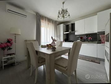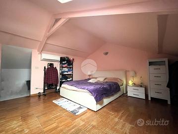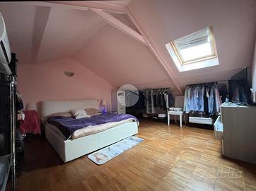 RIVABELLA IN ESCLSIVA: appartamento situato al secondo ed ultimo piano di una palazzina dotata di ascensore e che si sviluppa su due livelli collegati da scala interna, offrendo una distribuzione degli spazi funzionale e ben equilibrata. Al secondo piano si trova l'ingresso dell'abitazione, che si apre su un ampio soggiorno con angolo cottura. Questo ambiente rappresenta il cuore della casa, ben illuminato grazie alla presenza dell'accesso diretto al balcone, ideale come spazio esterno vivibile per momenti di relax. La zona cottura è ben integrata nel soggiorno, permettendo una disposizione pratica degli arredi e una chiara separazione tra area pranzo e area conversazione. Sempre su questo livello è presente lo studio, ambiente versatile utilizzabile come spazio di lavoro, cameretta o stanza per gli ospiti. Il piano è completato da un bagno finestrato, comodo e ben dimensionato, e da una camera matrimoniale ampia e luminosa, dotata di balcone privato che garantisce riservatezza, luce naturale e un ulteriore sfogo esterno. Dal corridoio, tramite una scala interna, si accede al piano mansardato che ospita una seconda camera matrimoniale, caratterizzata da un'atmosfera accogliente e riservata, con altezze variabili tipiche del sottotetto ma con spazi centrali pienamente fruibili. A servizio del piano è presente un bagno dedicato, elemento che rende questo livello indipendente e particolarmente adatto come zona notte principale o area per ospiti. Le parti con altezza ridotta possono essere sfruttate come spazi contenitivi o arredate con soluzioni su misura, aumentando la funzionalità complessiva. L'appartamento gode della posizione all'ultimo piano, che assicura tranquillità, privacy e una buona luminosità in tutti gli ambienti. La presenza dell'ascensore fino al piano principale rappresenta un importante valore aggiunto, rendendo l'immobile comodo e facilmente accessibile. La distribuzione su due livelli, la presenza di più camere e bagni e i balconi rendono quest