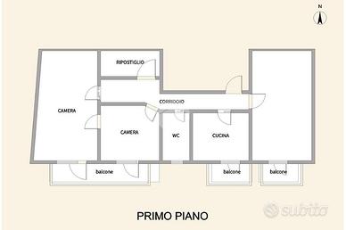 La zona notte è composta da due camere da letto ampie e luminose, entrambe dotate di balcone, un bagno finestrato e un ripostiglio funzionale.