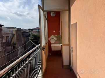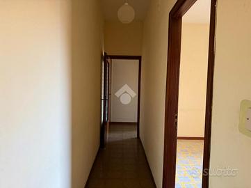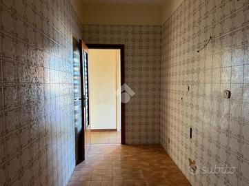 L'appartamento: al secondo piano ascensorato l'ingresso su disimpegno, a seguire il corridoio. Tre le camere, un bagno ed una cucina a completare gli spazi interni, mentre la lavanderia è in balcone nella parte verandata . Le condizioni interne dell'immobile son da ristrutturare negli impianti e infissi, le rifiniture tipiche dell'anno di costruzione del condominio. Peculiarità della casa un balcone a giro in parte terrazzato di mq 38 esposto a Sud ed Est, infatti l'appartamento si presenta luminoso ed arioso. Compreso nella vendita un box di mq 17.