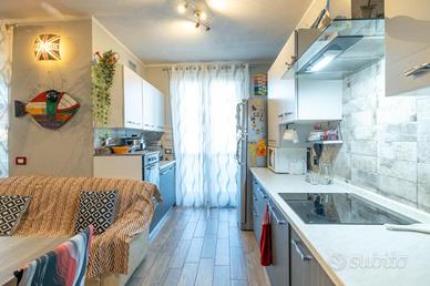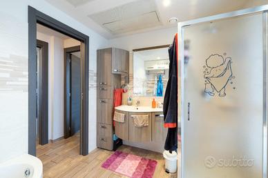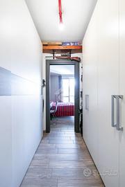 L'ingresso si apre sulla zona giorno con angolo cottura a vista, un ambiente moderno e accogliente che, insieme al soggiorno, gode dell'accesso diretto all'ampio terrazzo di 38 mq, perfetto per pranzi all'aperto e momenti di relax. Dal disimpegno si accede alla zona notte composta da una camera singola e da una spaziosa camera matrimoniale dotata di comoda cabina armadio. Entrambe le camere hanno l'uscita sul medesimo terrazzo che collega tutti gli ambienti della casa, garantendo continuità e grande luminosità.
