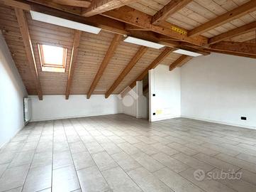 Una scala in muratura accompagna al piano mansardato, caratterizzato da travi a vista e da finestre che garantiscono ottima luminosità. Questo spazio offre la possibilità di realizzare una seconda camera con studio o cabina armadi, oltre ad un secondo servizio.