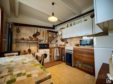 L'ingresso dell'abitazione si apre su una spaziosa e luminosa cucina abitabile, dalla quale è possibile accedere direttamente al balcone panoramico. Questo spazio all'aperto offre la possibilità di godere di momenti di relax e di contemplazione, immersi nella bellezza della natura circostante.