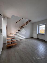 C.so Francia. Al confine con Collegno Leumann, in casa recentemente restaurata a nuovo, particolare alloggio trilocale disposto su due livelli abitativi composto nel seguente modo: sito al secondo piano senza ascensore, ingresso, salone, cucina abitabile con balconcino e servizio finestrato al piano; piano superiore camera da letto con tetto in legno a vista e terrazzo panoramico e coperto di 25 mq. Riscaldamento autonomo a pavimento con pompa di calore. E' richiesta fidejussione assicurativa. Subito disponibile.