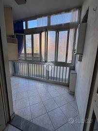 Via Sesia. In palazzina decorosa degli anni '70, restaurata totalmente nelle parti esterne comuni e fornita di cappotto termico, alloggio al primo piano fornito di ascensore e di buona metratura interna composto nel seguente modo: ingresso in disimpegno, generoso tinello ben squadrato e facilmente arredabile con cucinotto a vista ed accesso nel balcone lato cortile, due camere da letto matrimoniali e servizio finestrato. La posizione centrale ubicata a pochi metri dal corso Francia, rende l'immobile adatto a qualsiasi necessità di servizi principali. Basse spese gestionali e riscaldamento a consumo. E' presente la cantina al piano interrato.