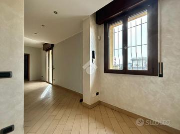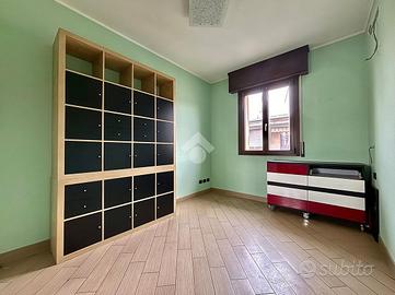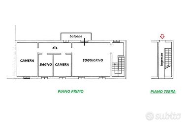 L'appartamento, di 100 mq, si trova al primo ed ultimo piano del complesso. L'ultima ristrutturazione è avvenuta nel 2019. L'abitazione è raggiungibile tramite la scala interna con accesso indipendente al piano terra. Il piano primo si compone di disimpegno d'ingresso, soggiorno con cucina a vista, disimpegno, due camere da letto e bagno sia con vasca sia con doccia. Dalla zona giorno si ha accesso al balcone di quasi 6 mq.